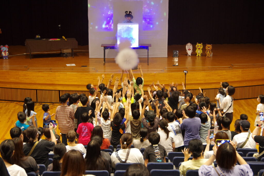 ショーの最後は、プロジェクションマッピングと空気砲が合体した迫力満点のデジタル空気砲で締めくくりました。
